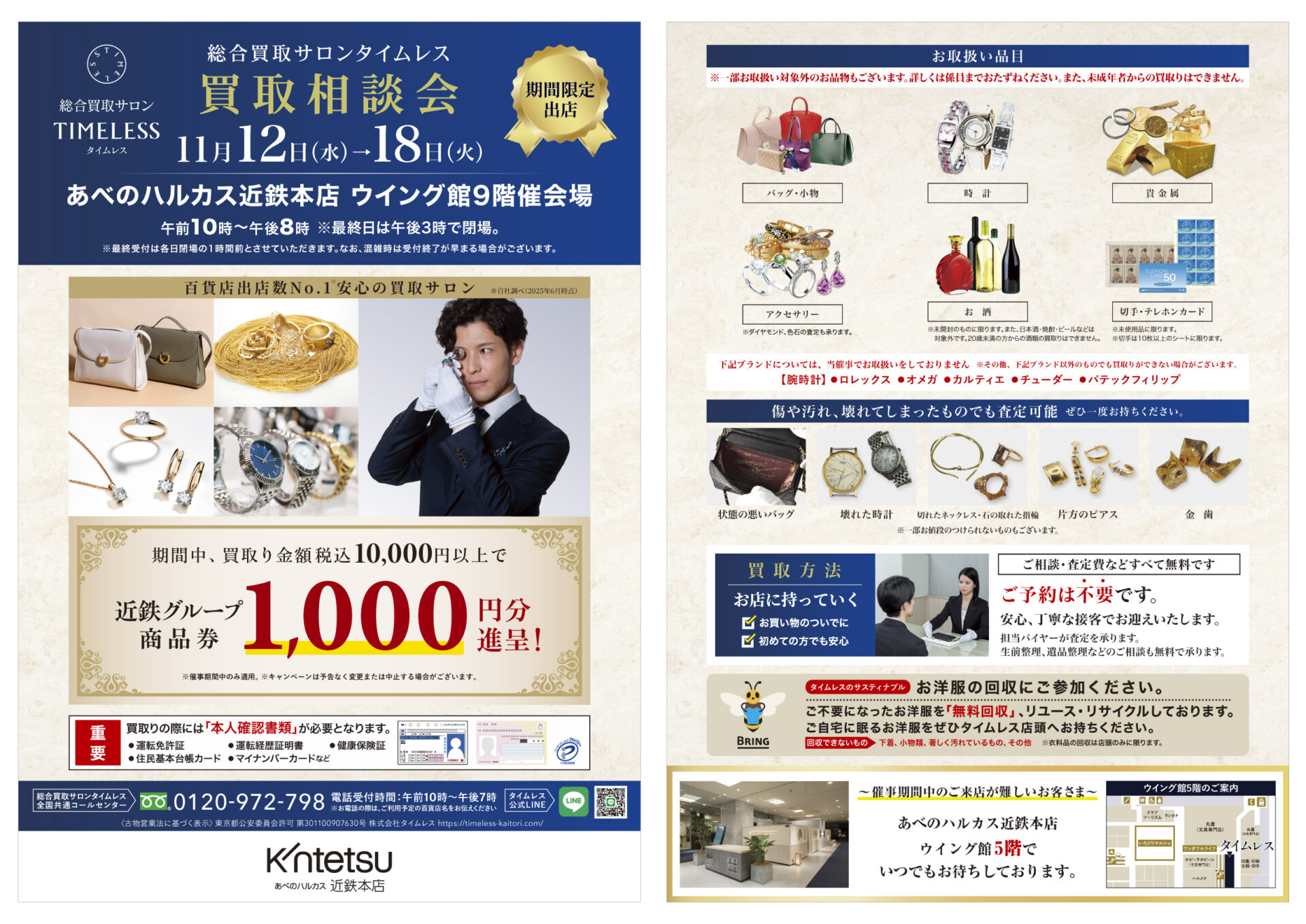 あべのハルカス近鉄本店にて買取相談会を開催決定!