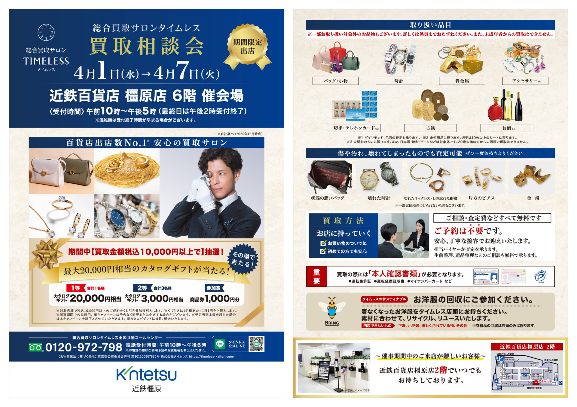 近鉄百貨店橿原店にて買取相談会を開催決定!