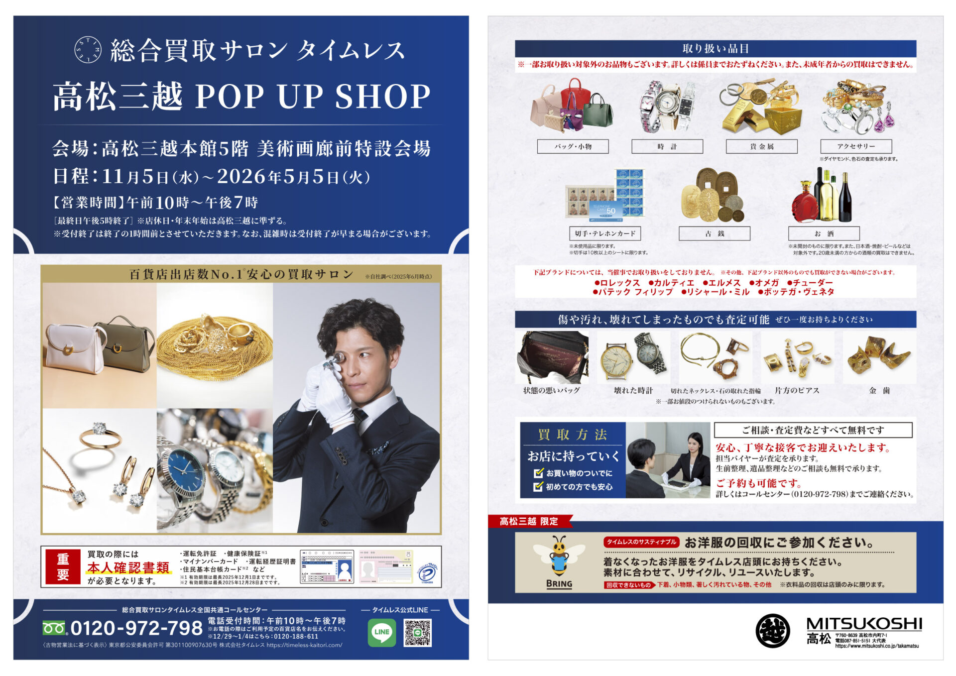 [最終日午後5時終了]※店休日・年末年始は高松三越に準ずる。