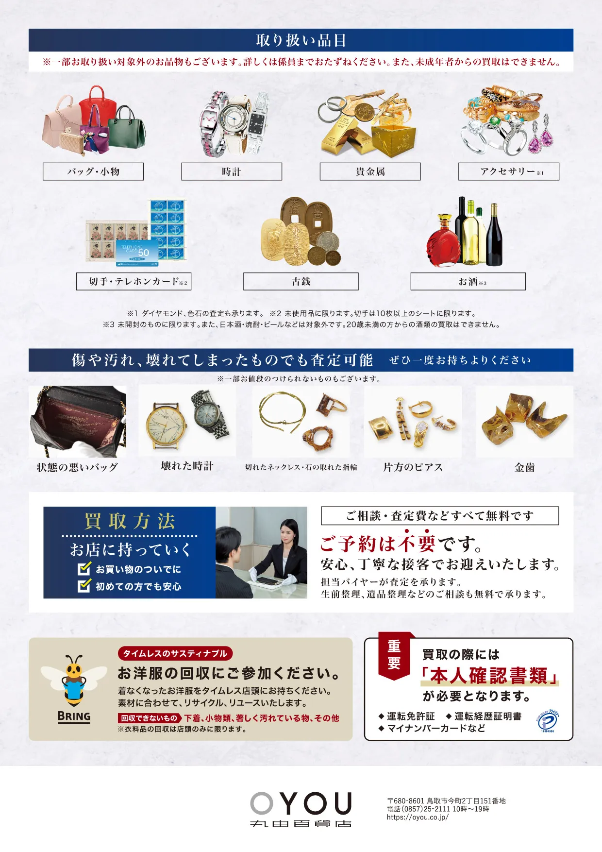 ※買い取り成立の場合は本人確認書類が必要となりますので、ご持参ください。
