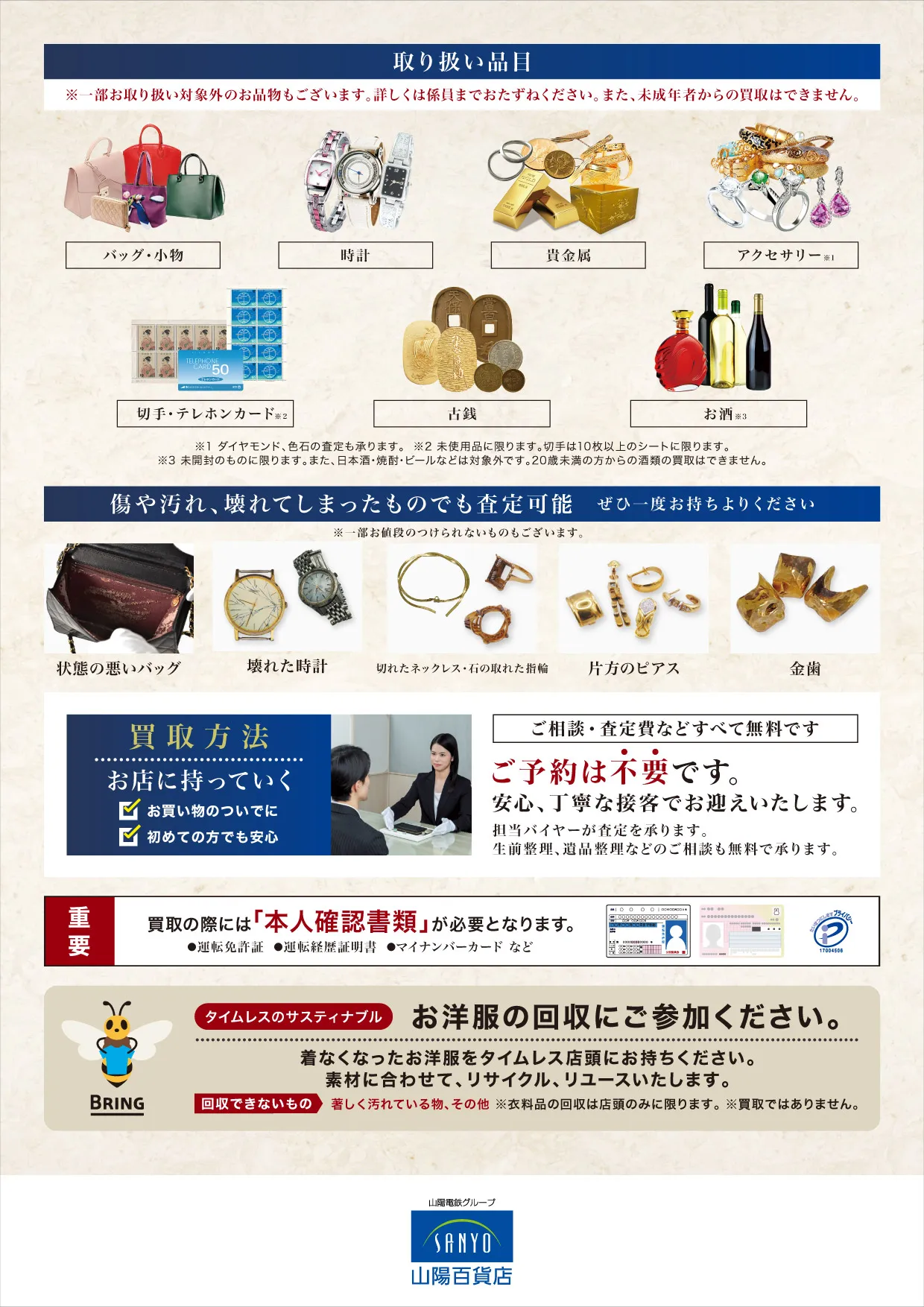 直接タイムレス催事会場にお品物をお持ちください。