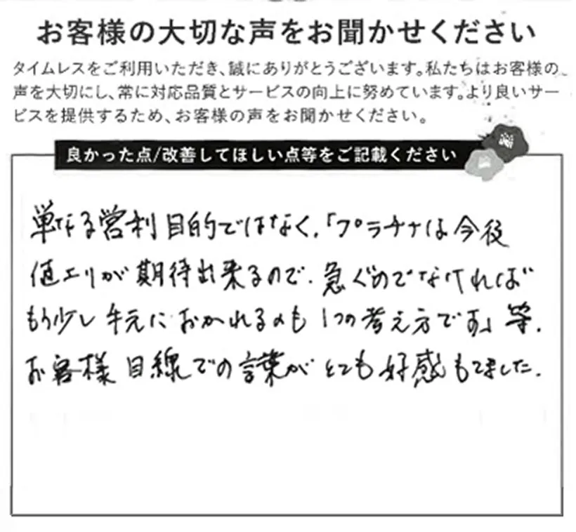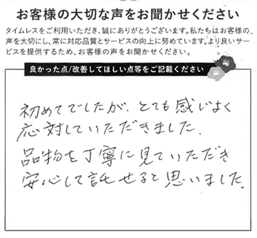 高価買取はもちろん、誠実な接客と透明な査定プロセスで、初めての方でも安心してお任せいただけます。