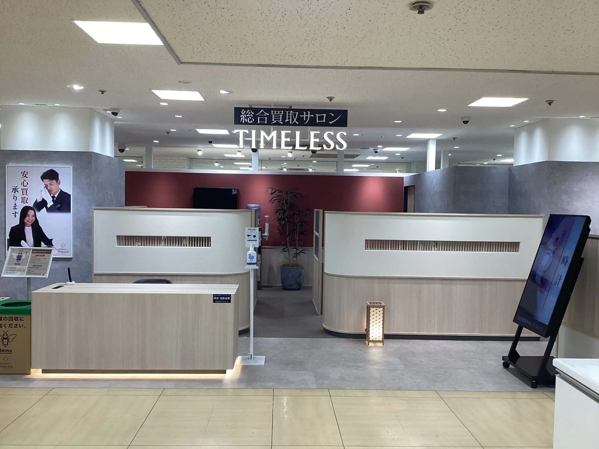 - 感染対策が万全なことはもちろん、査定中は落ち着ける店内で快適にお過ごしいただけます。また、受付システムにより待ち時間は百貨店内でのショッピングをお楽しみいただけます。